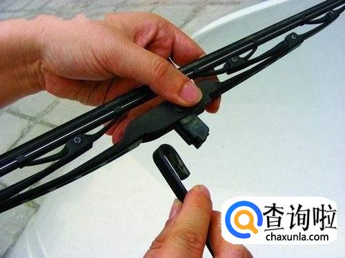 拆开原来的雨刷器,然后按住下方那个卡子,移出。