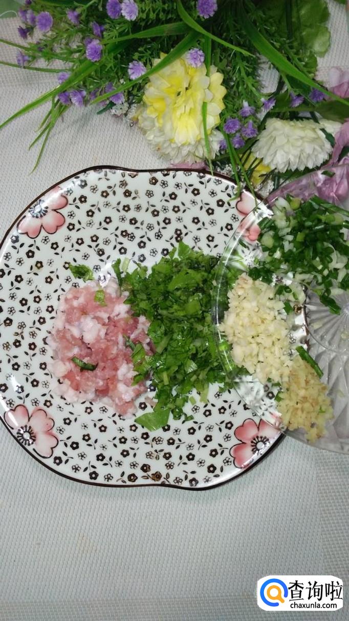准备适量葱姜蒜,分别切成末,然后将葱末,姜末,蒜末,肉末,芹菜叶末,放在一起备用。