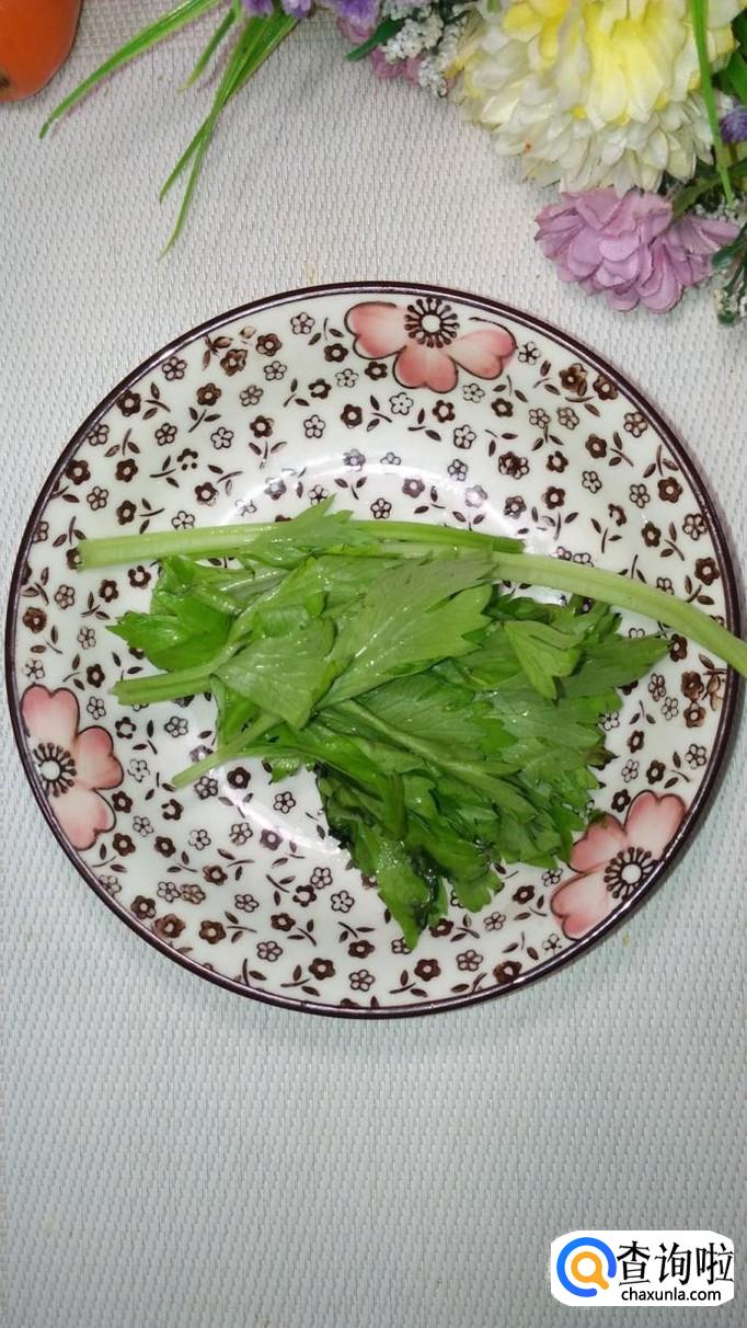 准备食材:五花肉适量,胡萝卜半根,芹菜叶适量。注意,芹菜叶子的营养价值非常高,最好选用鲜嫩的芹菜叶,这样口感更好。