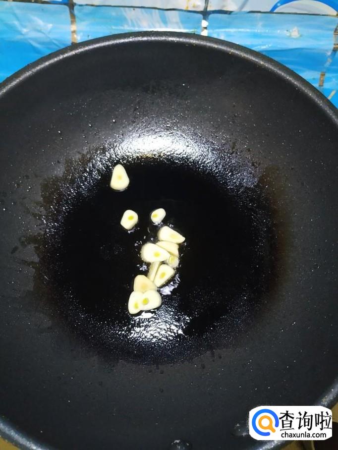 准备适量蒜,洗净后切成片,炒锅中放入适量油,油热后将蒜片放入锅中炒香,然后将准备好的土豆片,放入锅中,翻炒均匀。