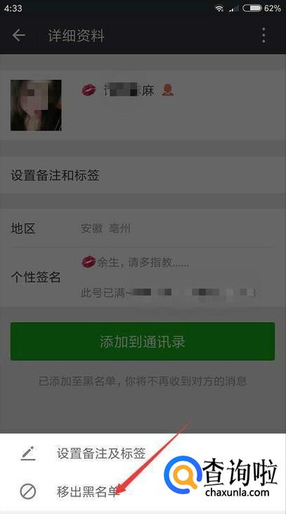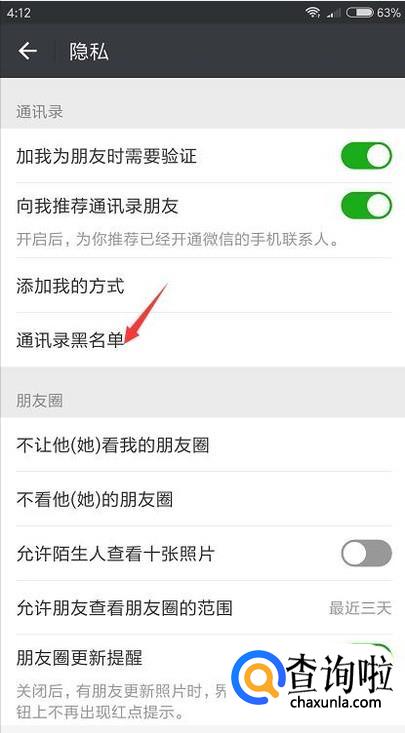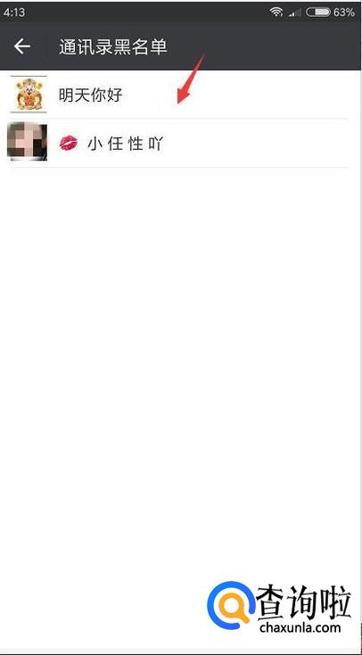 在微信被拉黑的朋友就是在这里了,点击你想要移出黑名单的人。