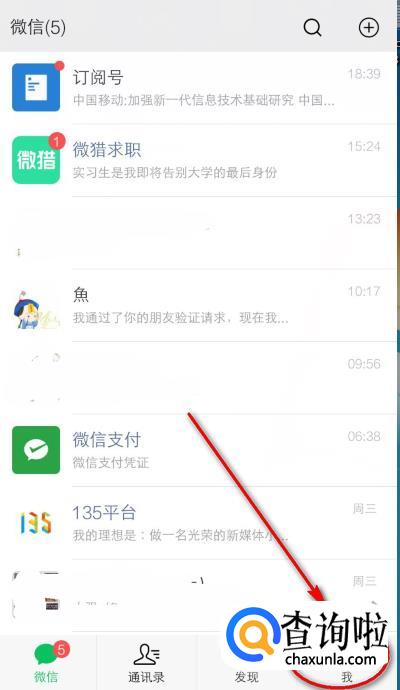 登陆微信之后,切换到“我”选项卡。