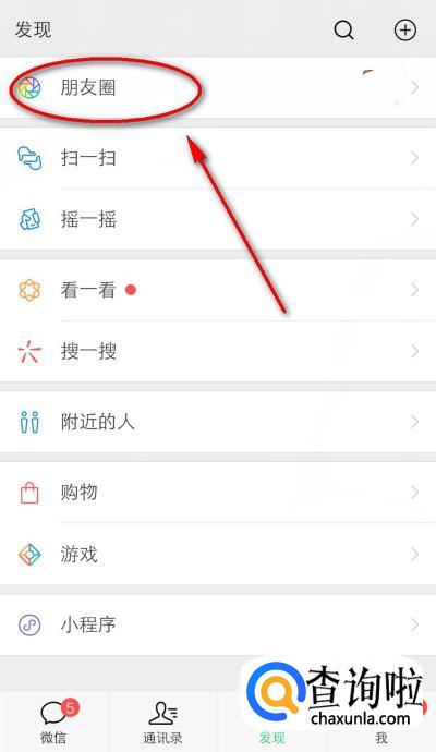 然后再点击上方的“朋友圈”。