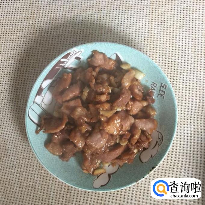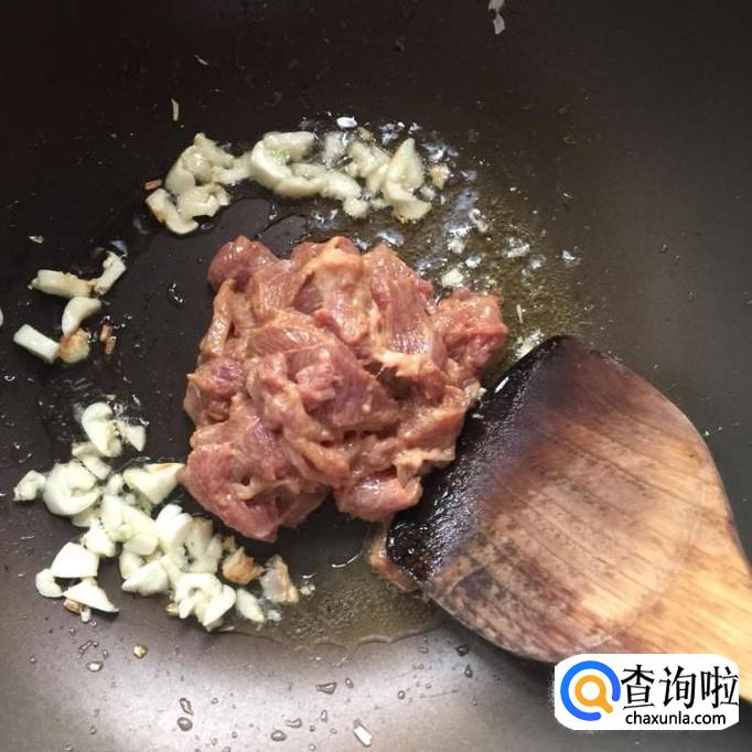 接着把瘦肉倒入锅中翻炒三分钟,装盘备用。