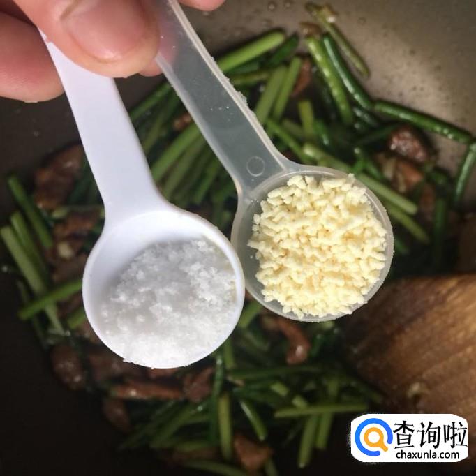 然后往过中加入一勺的盐巴和一勺的味精,翻炒片刻就可以出锅了。