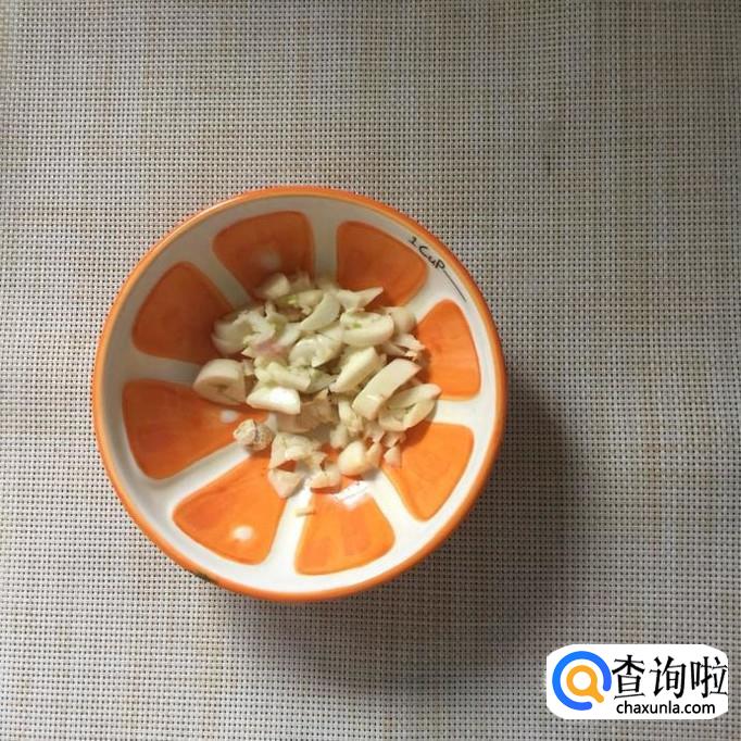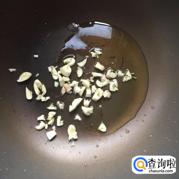 首先将蒜头切成蒜蓉,锅中放入适量的食用油,待油冒烟,倒入蒜蓉爆香。