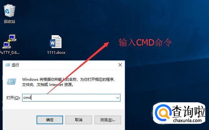 按下Ctrl+R组合键,打开运行界面,输入CMD命令,如下图所示
