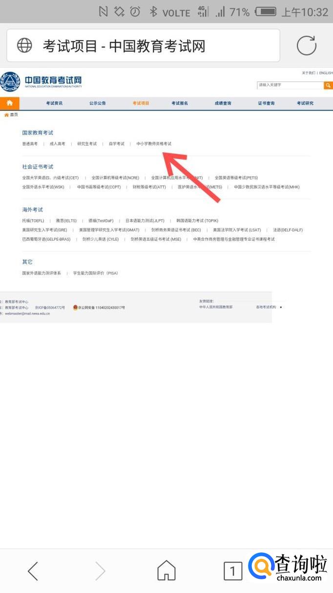 在“国家教育考试”一栏中找到“中小学教育资格考试”,点击进入。