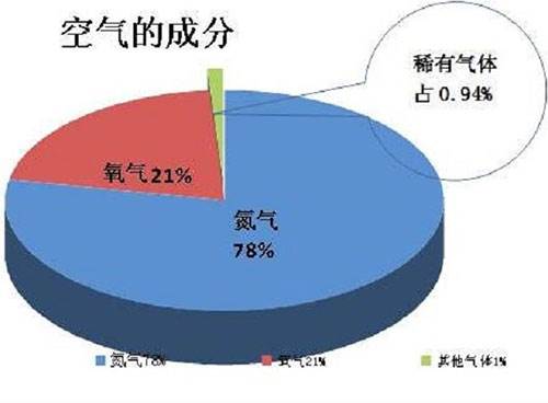 空气是指地球大气层中的气体混合,为此,空气属于混合物,它主要由 氮气、氧气、稀有气体(氦、氖、氩、氪、氙、氡),二氧化碳以及其他物质(如水蒸气、杂质等)组合而成。含量最多的气体是氮气,其中氮气的体积分数约为78%,氧气的体积分数约为21%,稀有气体(氦、氖、氩、氪、氙、氡)的体积分数约为0.934%,二氧化碳的体积分数约为0.04%(2017年最新数据),其他物质(如水蒸气、杂质等)的体积分数约为0.002%。