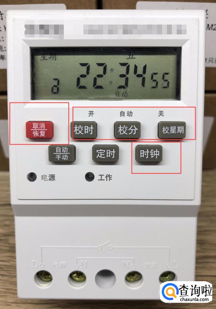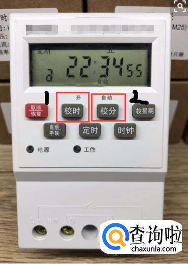 然后我们就要设置“时”、“分”了,我们先按“校时”,之后就会出现00-23的数字,也就是24小时的数字,“时分”就会出现1-59的数字,我们根据时间情况进行调整。