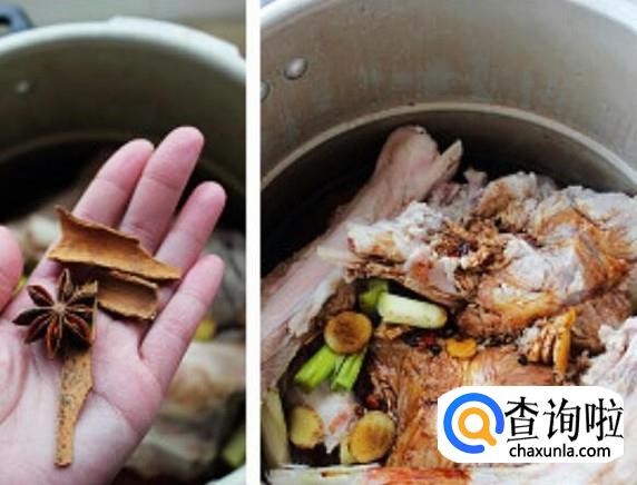 煮好之后,把羊骨头放入锅中,加入适量的水,然后加入花椒、大料、草果、白芷、小茴香、孜然、香片、肉寇、桂皮、新鲜的姜片和一些料酒用猛火炖。