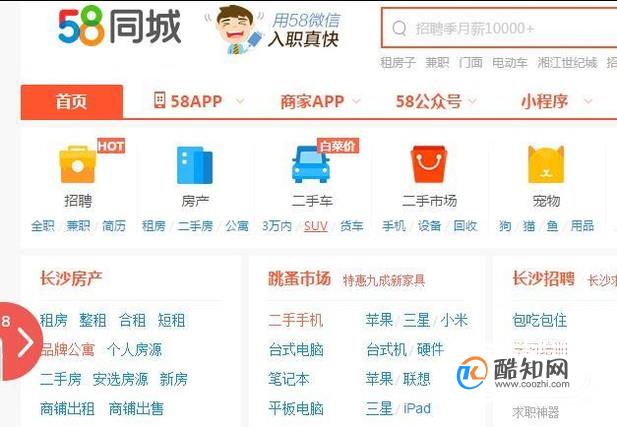 打开浏览器,找到“58同城”并点击进入,进入后,点击房产进入。