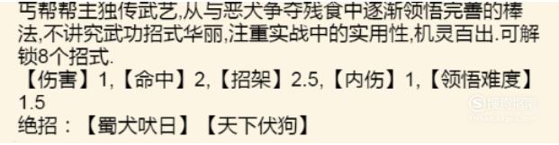 学习条件:获得“破麻袋”、基本棍法300级、读书识字200级