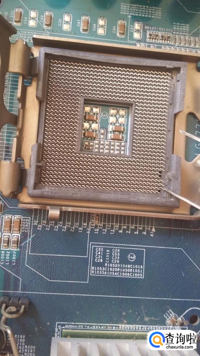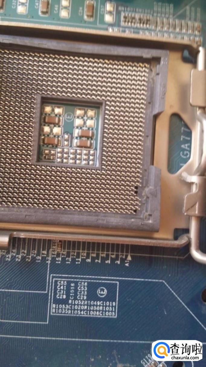 如果是主板上的CPU底座的针脚弯了,那就得小心操作了,像下图,右下角的针脚就弯了,明显翘起来了
