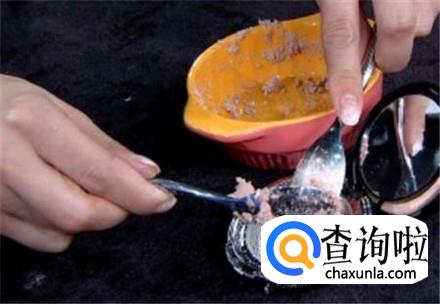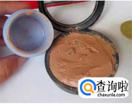粉饼放在一个化妆碗里或者是干净的食品袋上,倒入一点保湿水,倒一点用棉签拌一拌,直到粉饼完搅拌均匀。