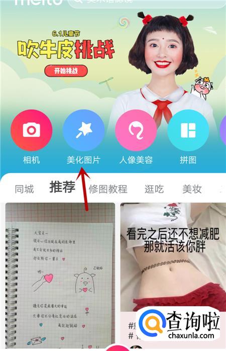 点击美化图片图标,从手机中打开想要去掉水印的图片。