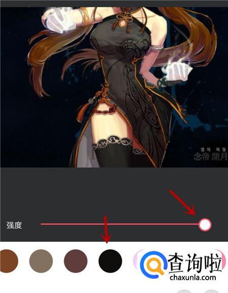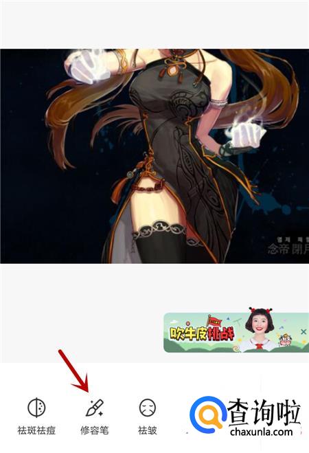 在修容笔界面,选择笔的强度,再选择好与背景色一样的颜色。