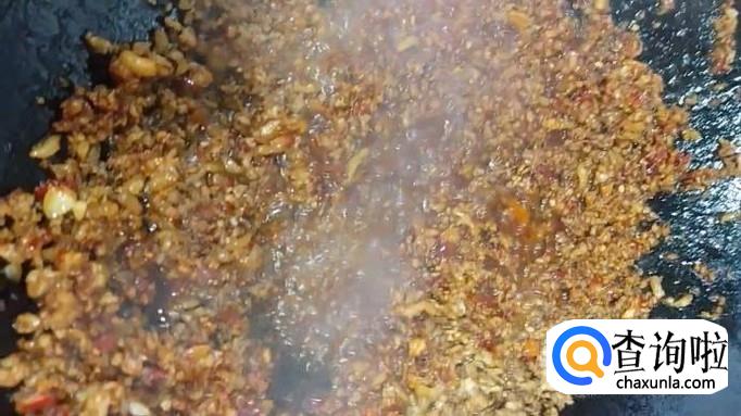 继续小火翻炒,直至郫县豆瓣酱炒出红油为止。