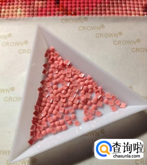 将钻石倒入点钻盘中,这里可以教给大家一个小技巧,就是将钻石倒入点钻盘之后,可以轻轻晃几下,钻石就会乖乖排好队,都变成正面朝上了,方便我们操作。