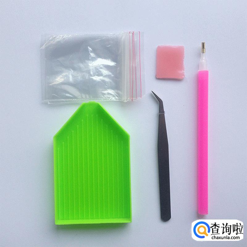 首先我们先准备好制作钻石画的必须工具,小镊子,点钻笔,点钻盘,至于大家使用镊子还是点钻笔,这个全凭个人喜好。