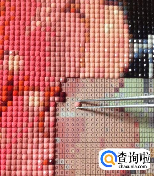 接下来就是点钻,用镊子将钻石摁在画布对应的位置上,每贴完一块区域就重复上述操作,只要我们别搞错画布上对应的钻石编号,那么我们很快就可以完成一幅钻石画了。
