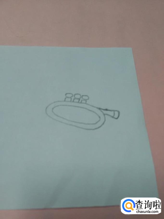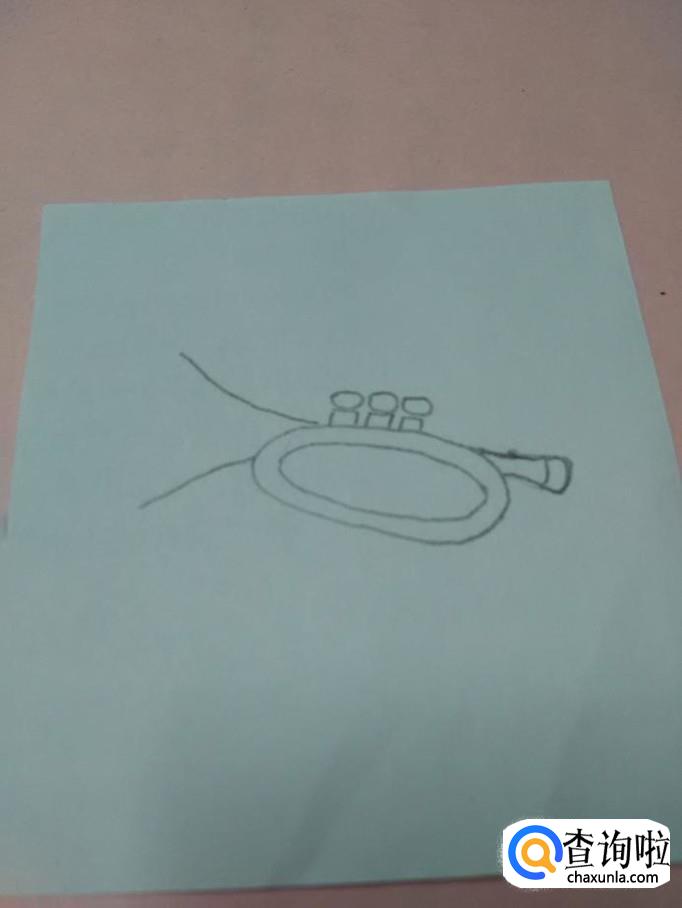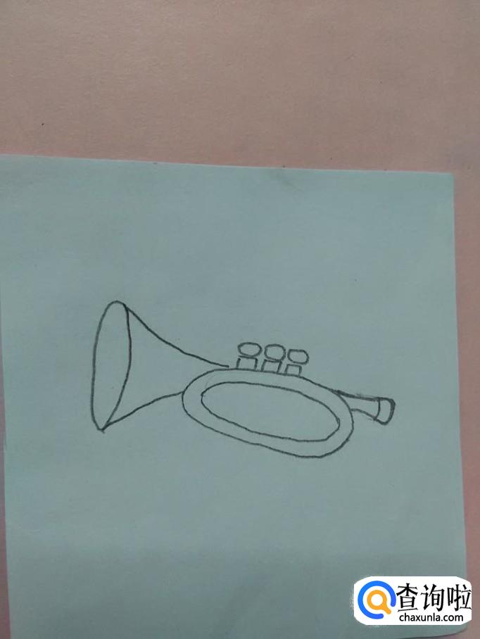 在喇叭左侧,画一个椭圆形,表示喇叭口,小号就画完了。