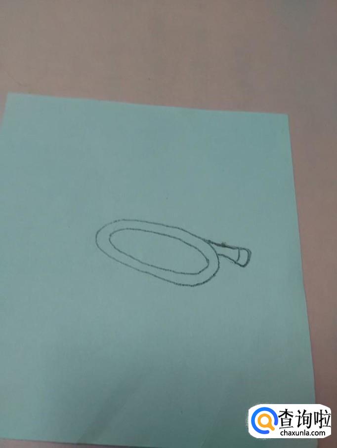 用铅笔在纸上画一个酒瓶口的形状,表示小号的吹嘴。