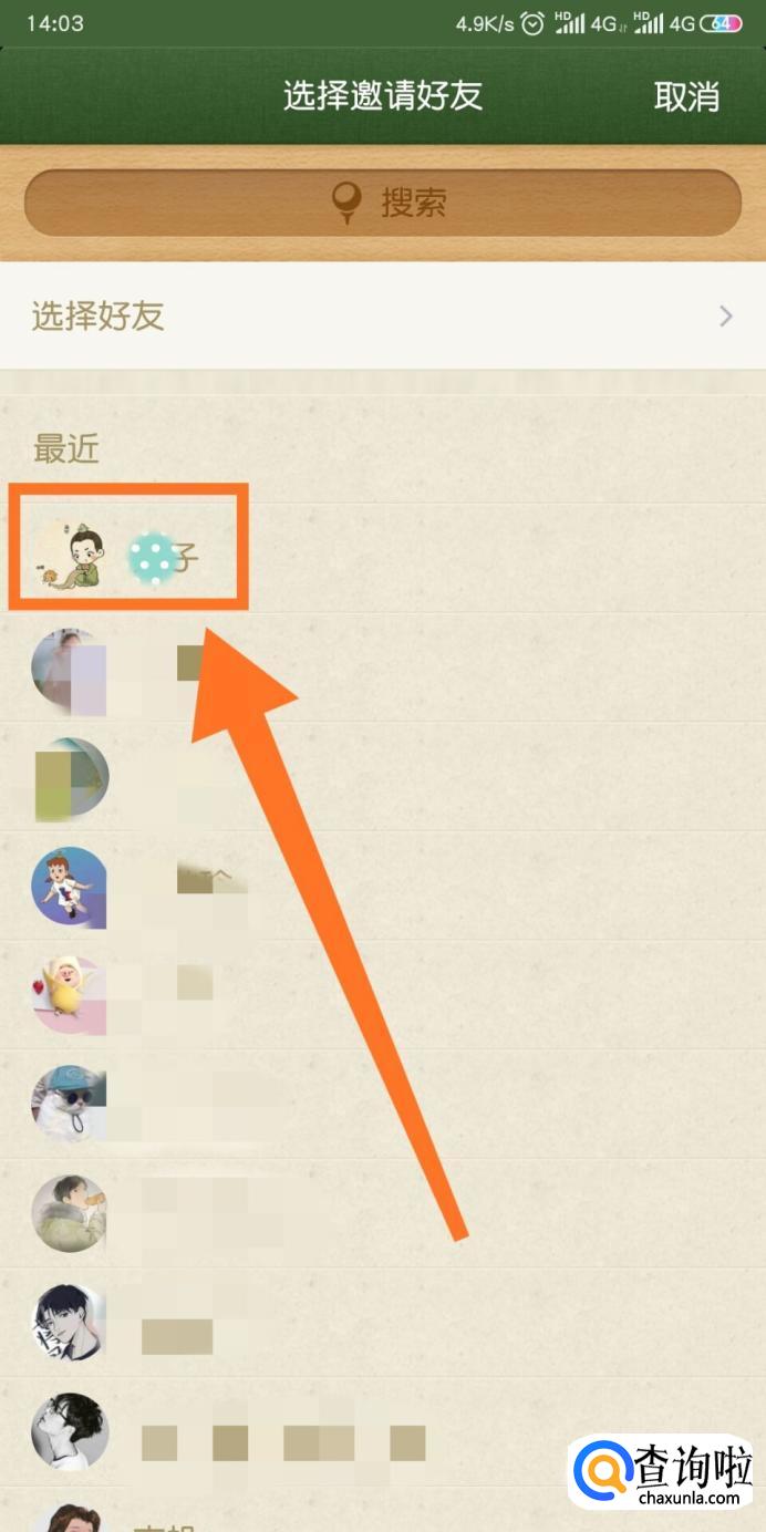 然后我们选择我们的好友,选好好友之后点击她。