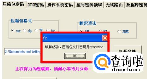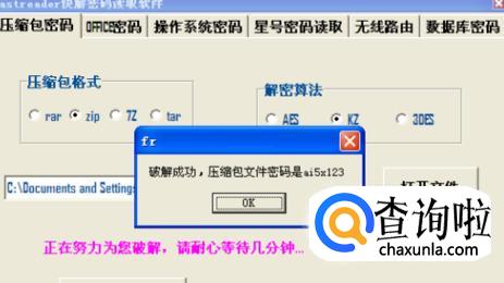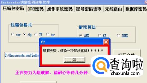 8、如果我们需要破解其他格式的压缩包文件如ZIP,方法类似,按以上步骤操作即可,有时会遇到破解失败的情况,换一种算法即可,看下面例子: