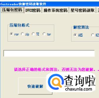 3、打开快解密码读取工具,切换到“压缩包密码”页面