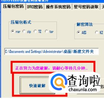 6、点击“快速破解按钮”,会看到软件开始破解压缩包文件