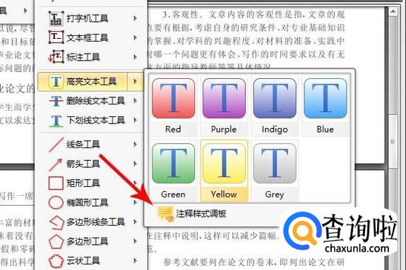 在高亮文本工具中,有很多默认样式,小编每次都用的是蓝色,不知道大家喜欢什么样的颜色,在样式的下面有一个注释样式调板。