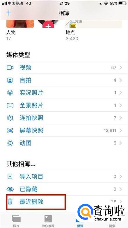 接着点击最近删除,如下图所示。