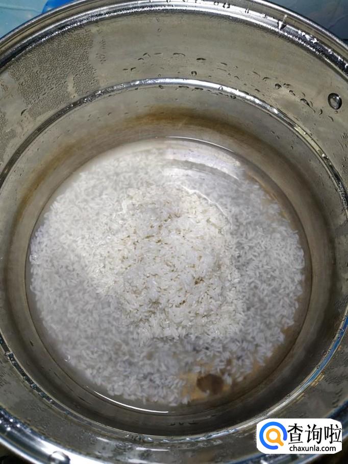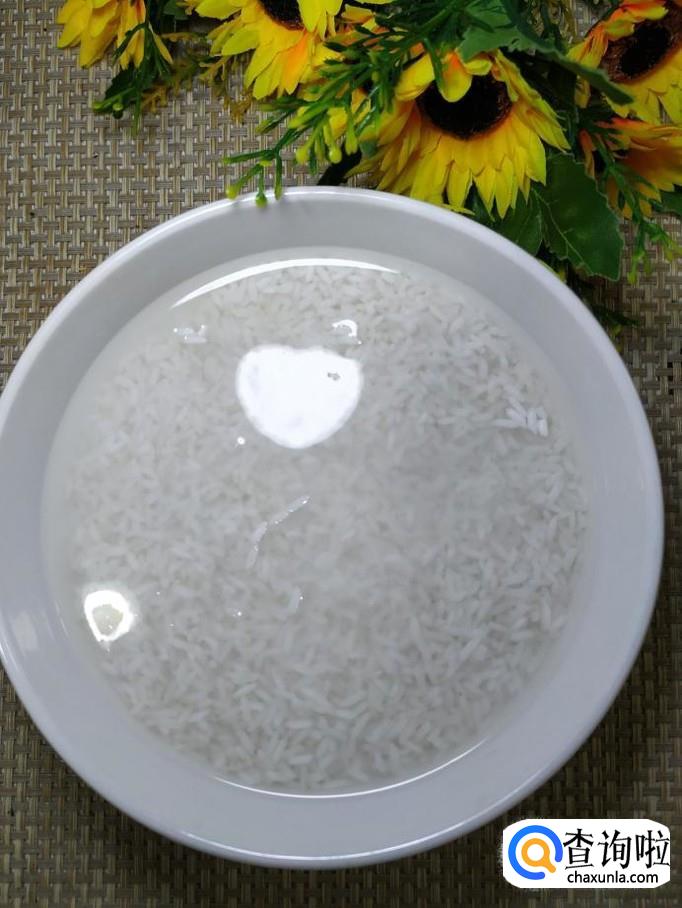 碗中放入适量大米,加入适量清水,泡半个小时左右,然后将大米洗净,倒入锅中。