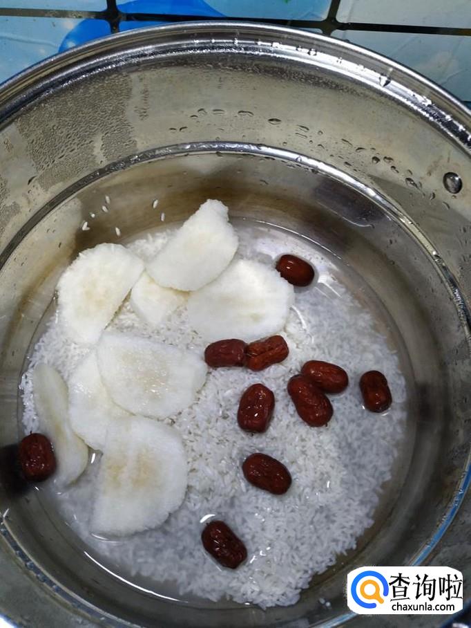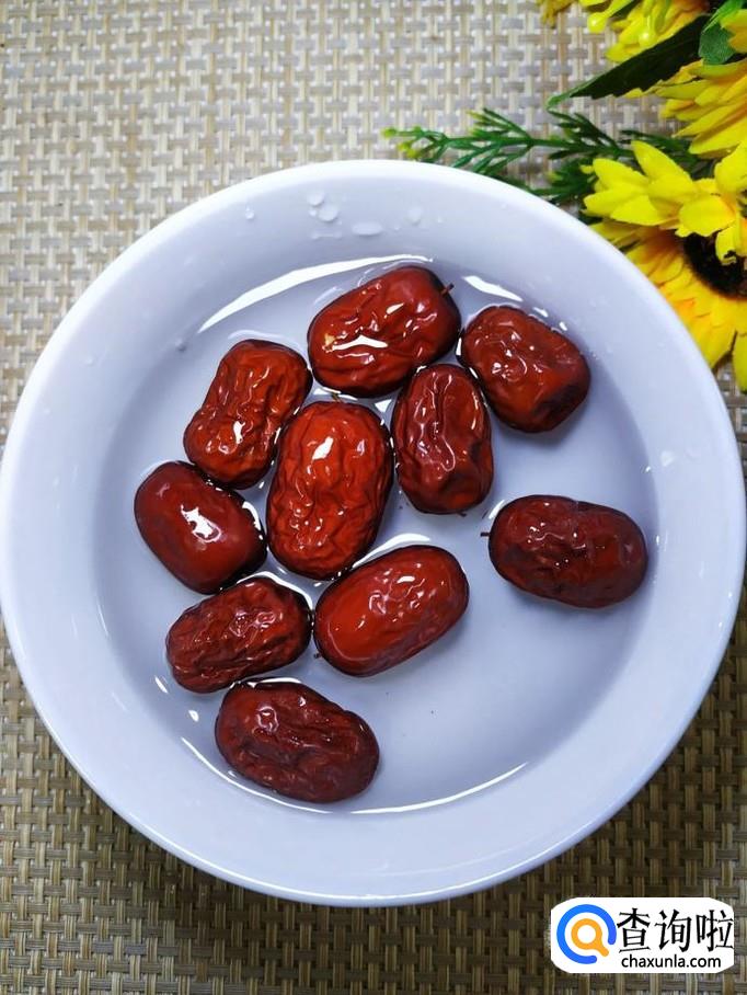 准备适量大枣,用清水洗净,泡一会儿,然后将大枣倒入锅中。