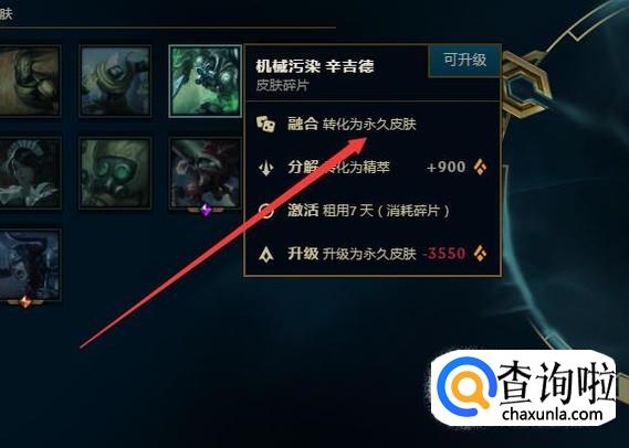 如图合成之后,就会随机合成一个免费的皮肤了。
