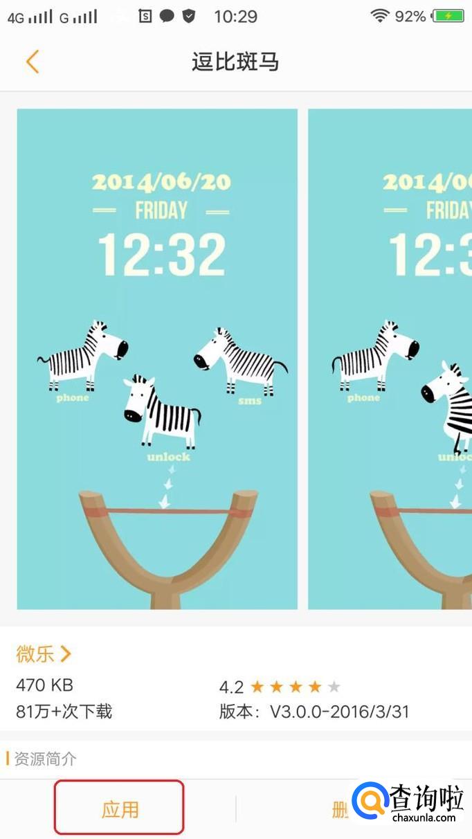 下载完毕后,左下角有一个“应用”按钮,点击一下,就把该壁纸应用到动态锁屏了。可以根据个人喜好下载不同的动态壁纸来作为锁屏画面。