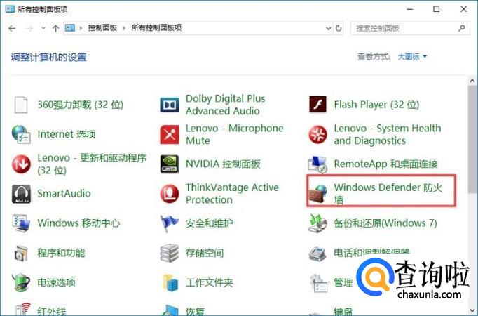 进入控制面板之后,我们点击Windows Defender防火墙;