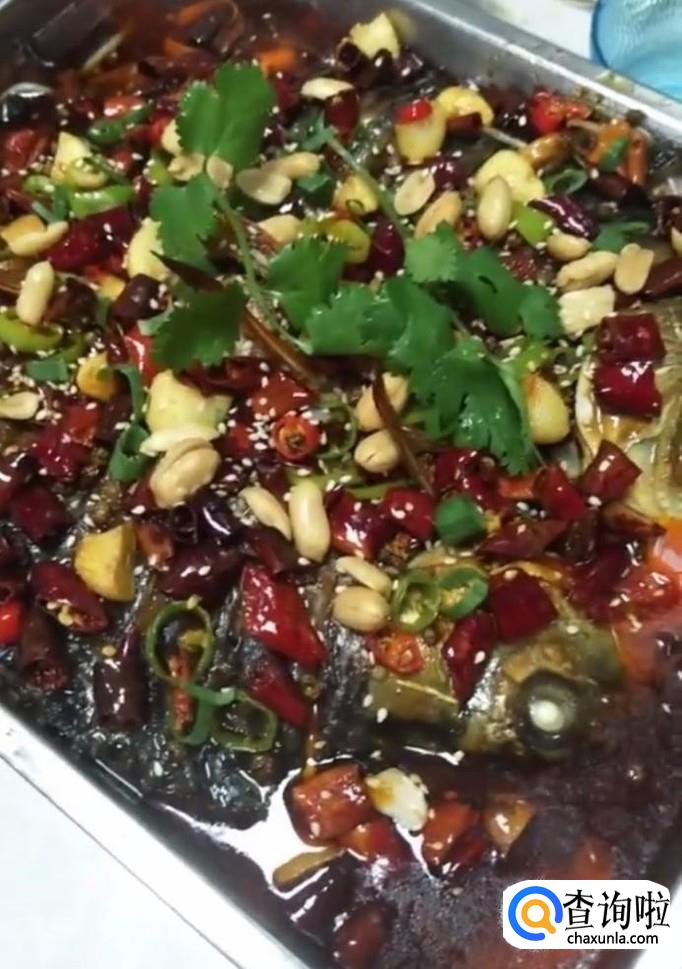 另起锅加入少许红油,放入麻椒,少许香油,放入蒜片,干辣椒,尖椒,放入适量孜然,大火爆香一下,把热油浇在鱼上面