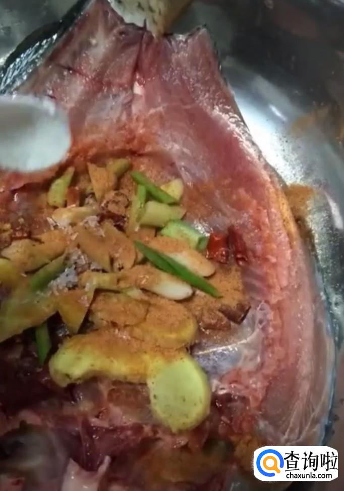 然后我们将改刀好的鱼放入一个盆中,加入适量的葱姜,干辣椒,麻辣鲜,味精,鸡精,料酒,加适量的水,抓拌均匀,腌制五分钟左右