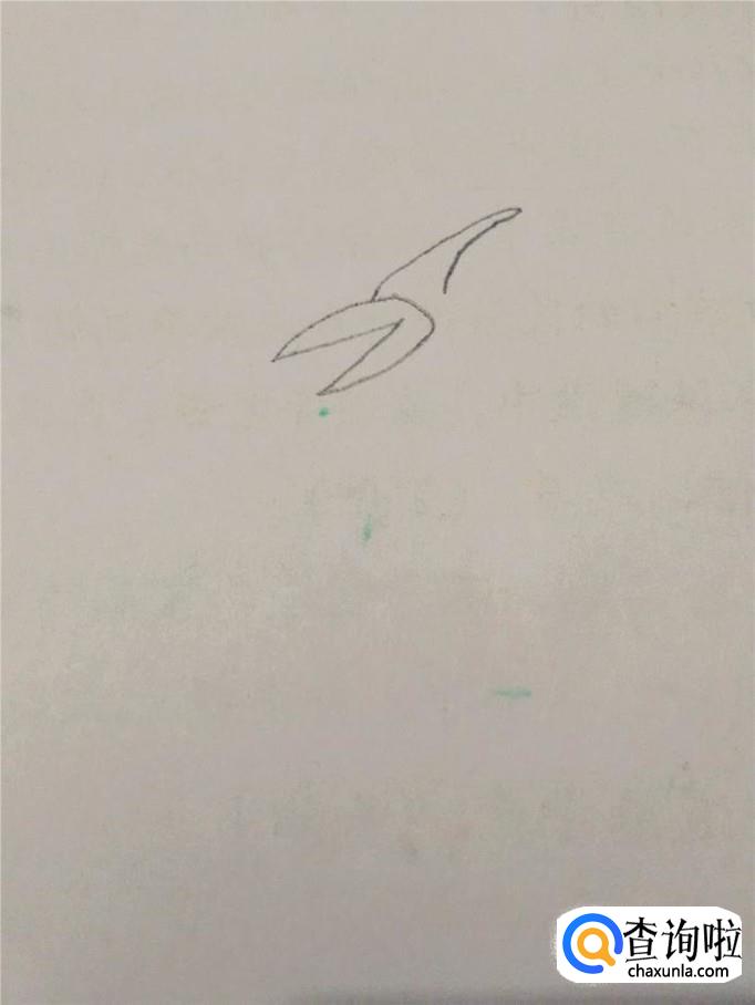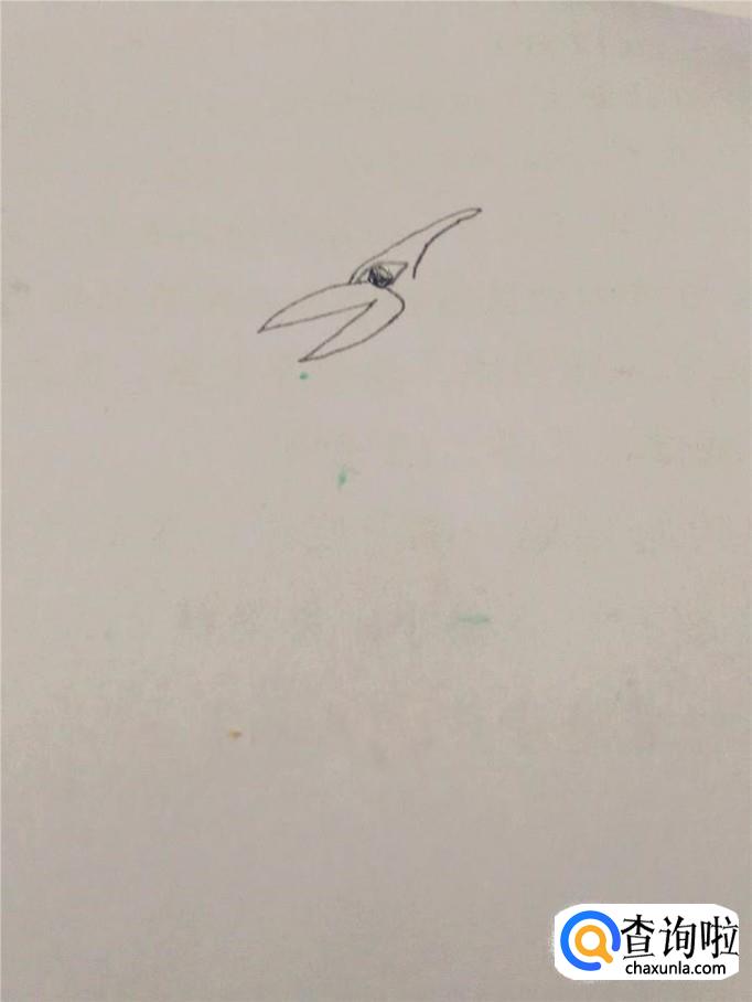 从脖子和上肢的拐弯处向左上方再画一个尖尖的月牙形,表示另一只翅膀。