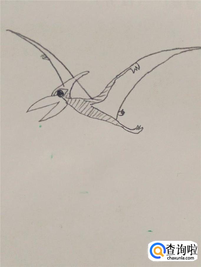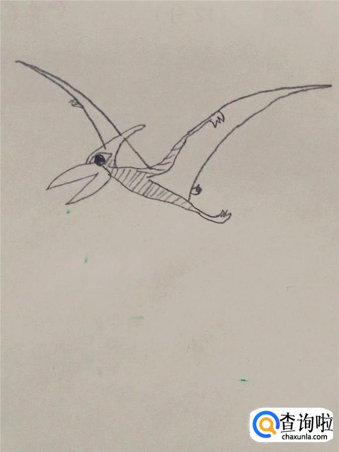 最后在翼龙身体上画一些小短线,表示粗糙的皮肤,翼龙就画完了。