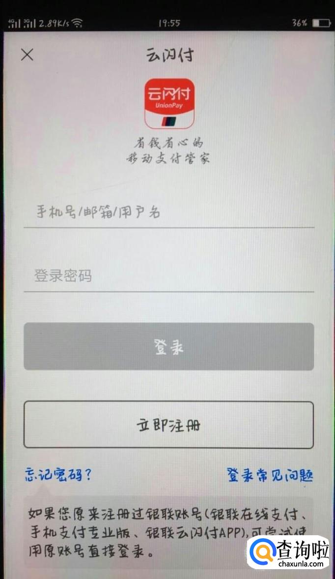 点击登录之后,可以进入下一界面,下一界面中,除了有登录,还有“立即注册”,点击立即注册就能够注册银联钱包啦。