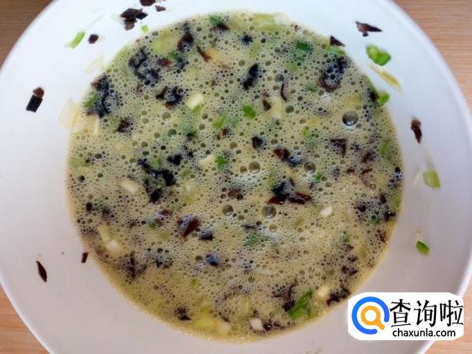 再把鸡蛋打入碗中,拌和均匀,搅拌成鸡蛋液。
