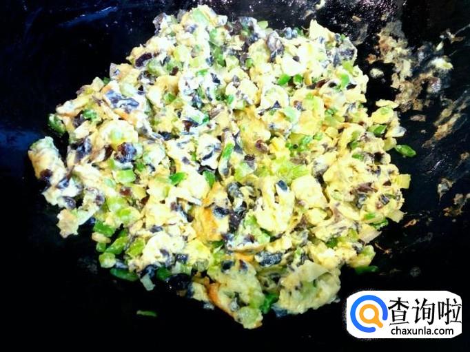 芹菜 150克,木耳 适量,青椒 1个(小),鸡蛋 4个。