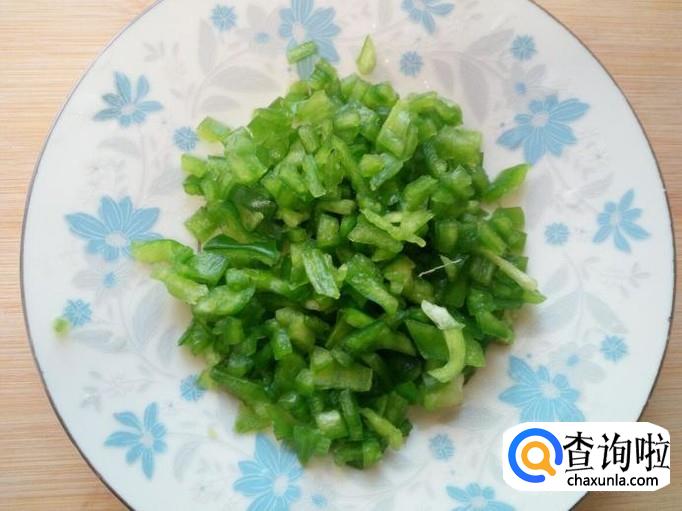 青椒用水清洗干净,控干水分,切成末。葱,姜切成末。