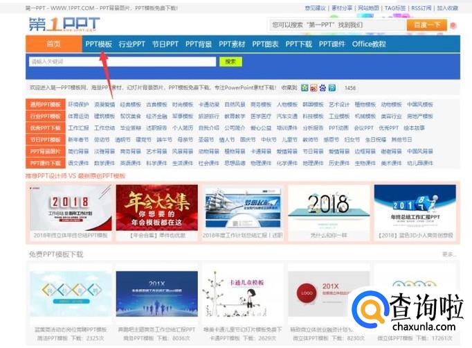 首先,我们先利用网址:http://www.1ppt.com/找到第一PPT的网站,这个网站上有大量免费的PPT模板以及素材供给新人使用。(Thanks to 1PPT)