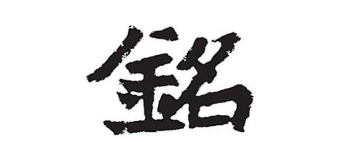 铭,刻在碑上,放在书案右边用以自警的铭文叫“座右铭”。意思是一种刻在器物上用来警戒自己、称述功德的文字。后来成为一种文体,这种文体一般都是用韵的。用铭字取名,意为警戒自己,还有博闻强记、才华横溢、杰出之义等。