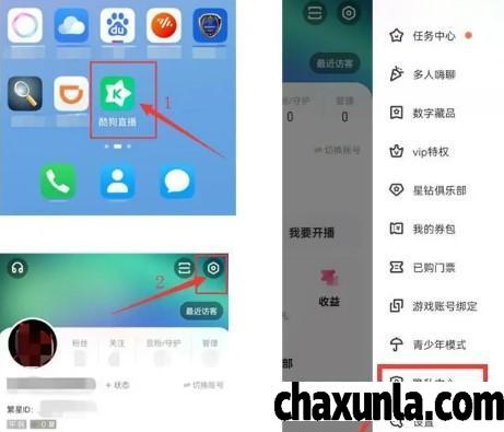 打开酷狗直播软件,点击设置,点击隐私中心。
