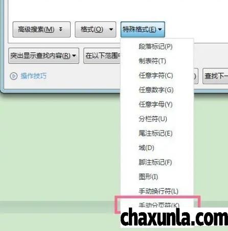 点击特殊格式,选择下拉框里的手动分页符。